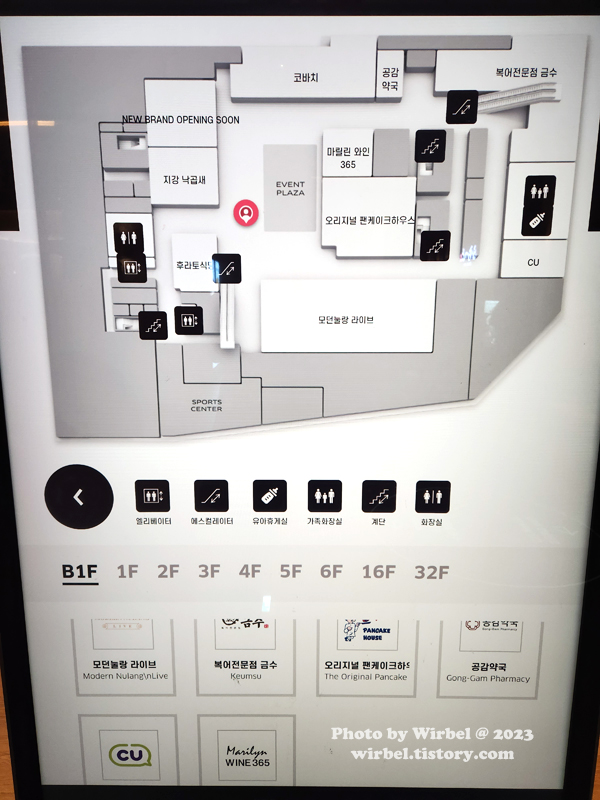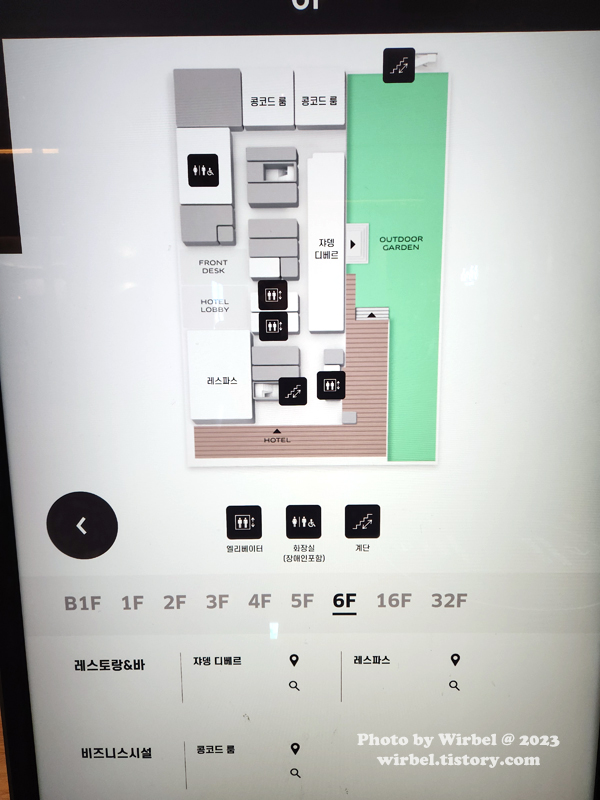 잠실 소피텔앰배서더서울 16층 층별 안내도.