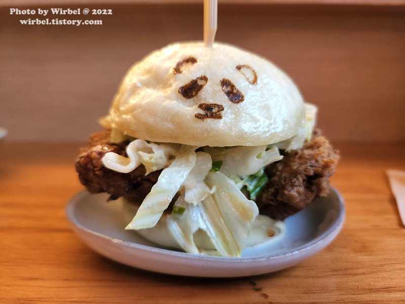 치킨 버거의 미니미니 버전으로 볼 수 있는데 찐빵의 푹신한 느낌이 있습니다.