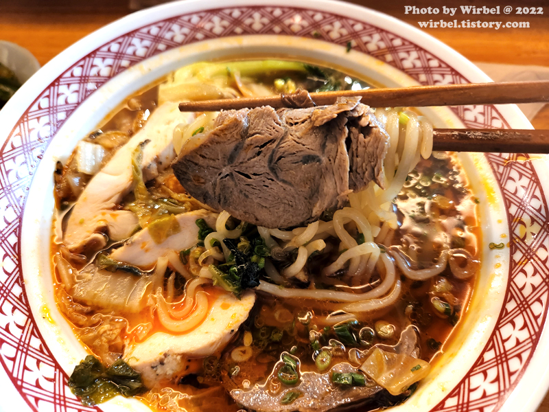 독특하게 배추가 들어가 있어서 대만에서 먹는 우육면과는 스타일이 다릅니다.