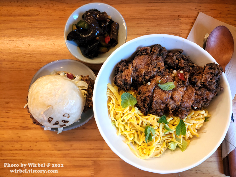 치킨 바오가 먼저 나오고 이후 치킨덮밥이 나옵니다.