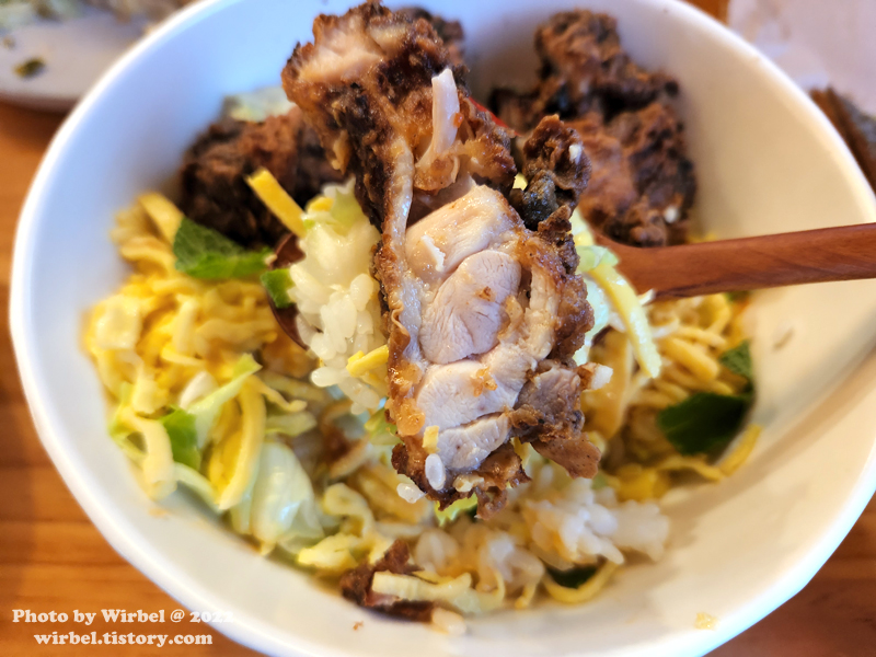 평상시 먹던 치킨덮밥과는 다른 개성 있는 치킨덮밥입니다.