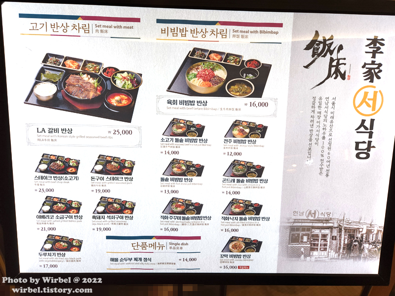 이가서식당 추천 메뉴.