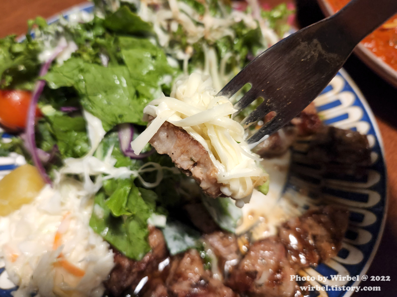 고기 조각은 치즈를 같이 곁들여서 먹어도 좋습니다. 츄릅~~