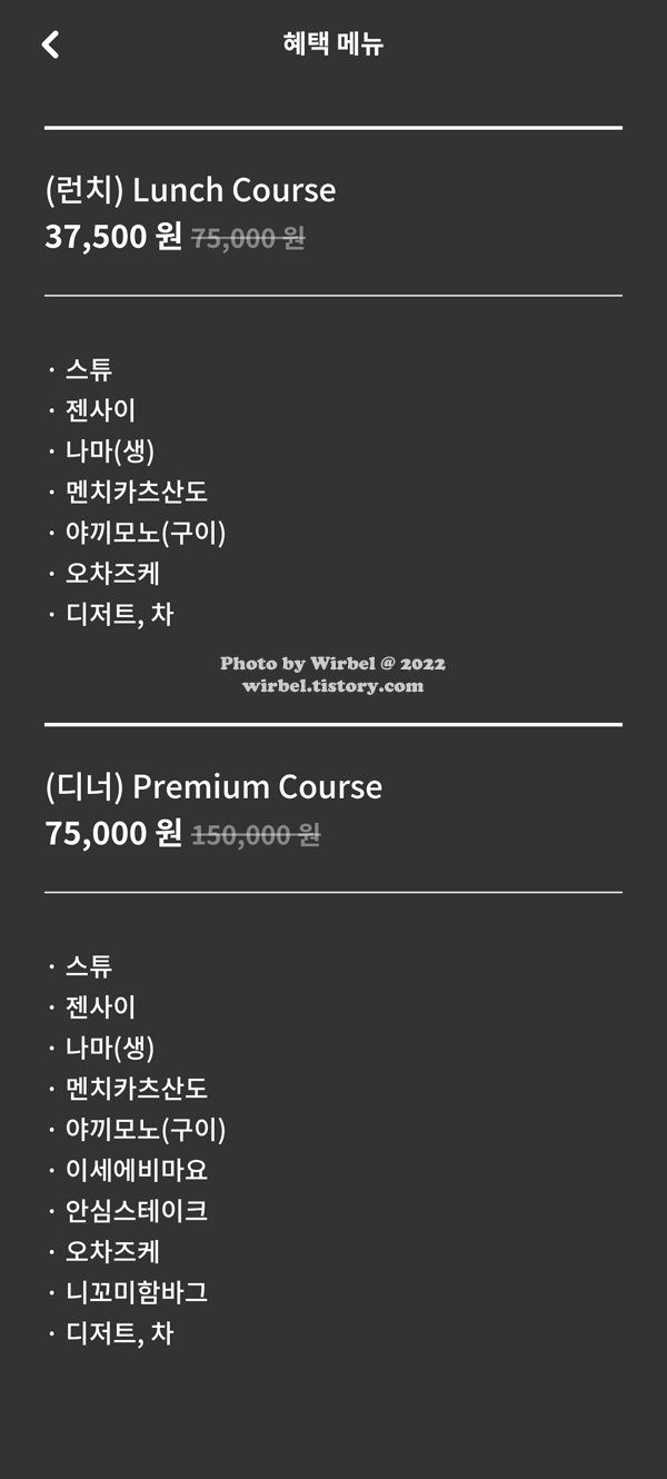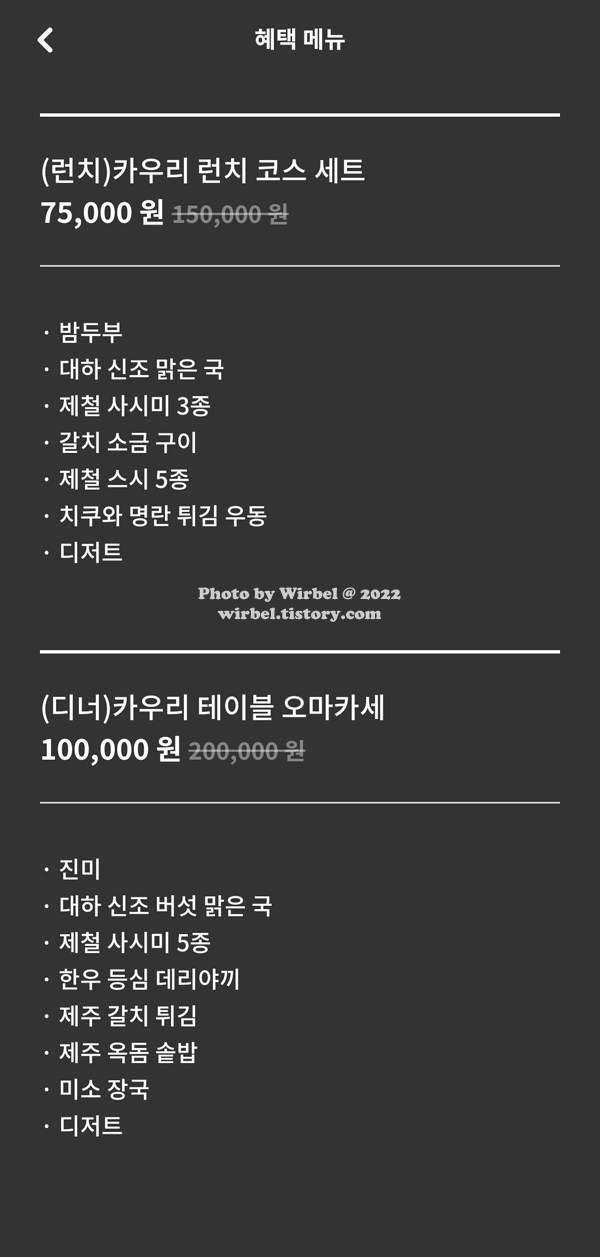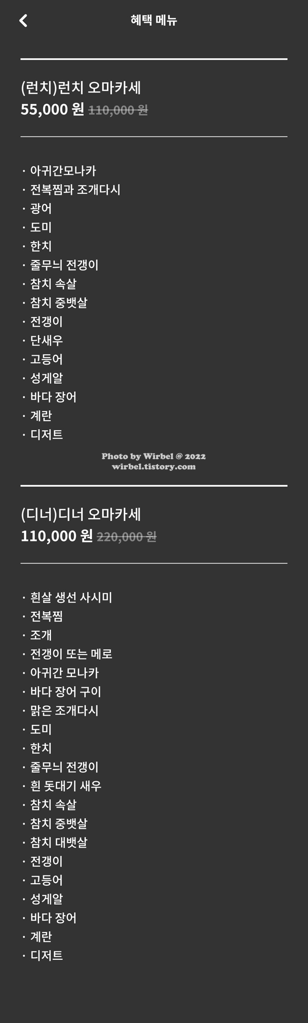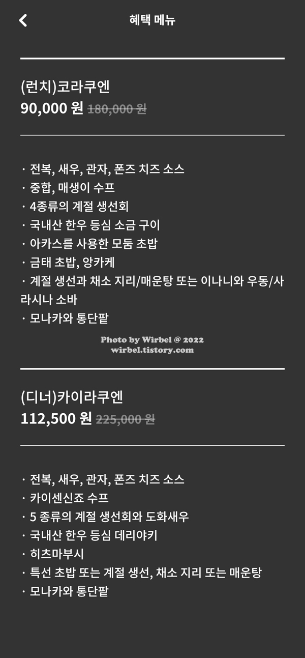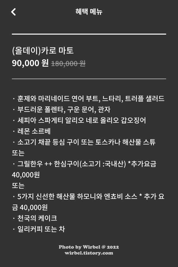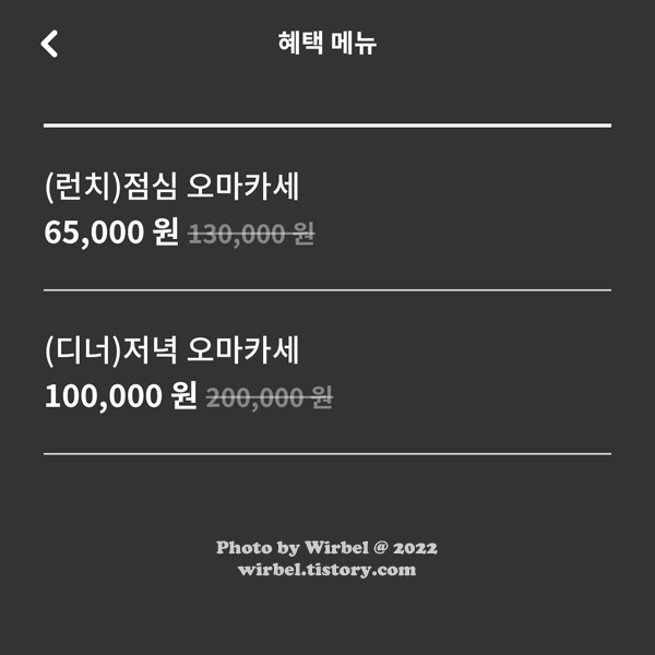 강남구청역 로바타라이브라 카운터 고메위크 메뉴 가격.