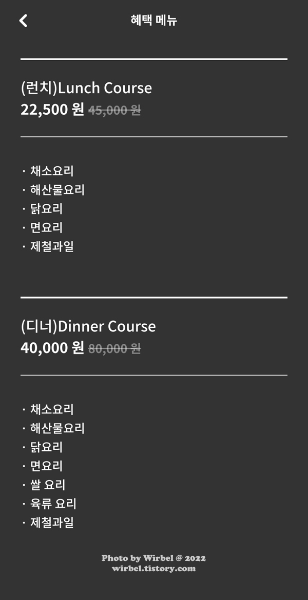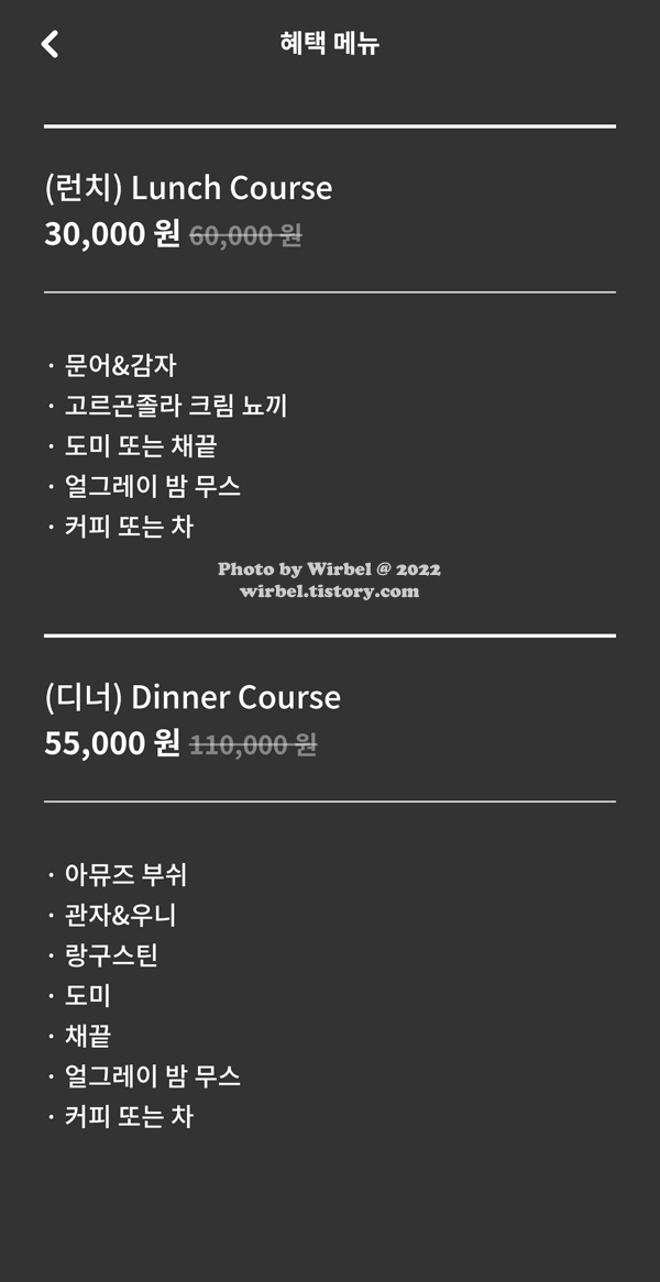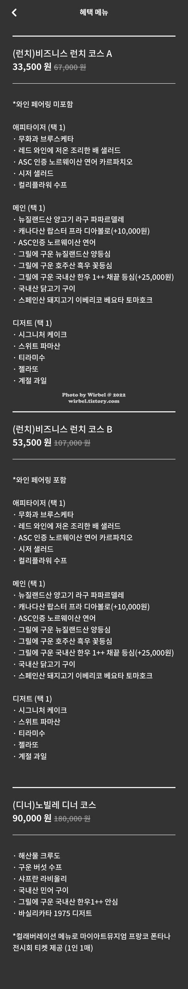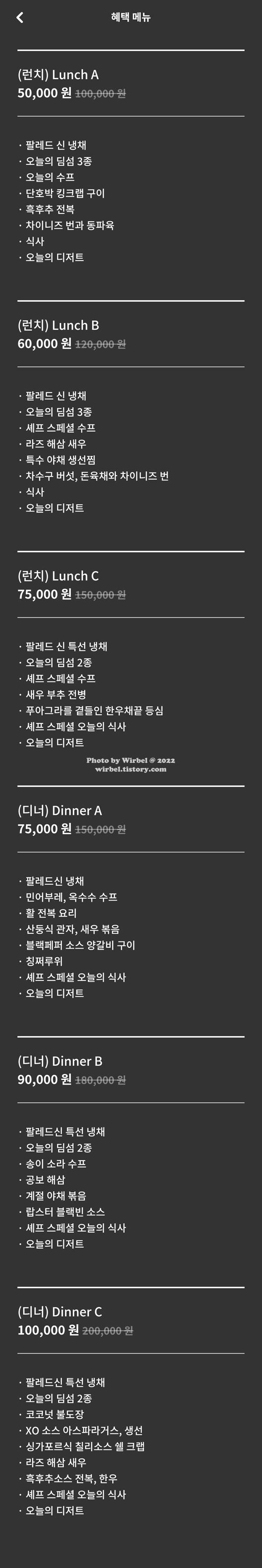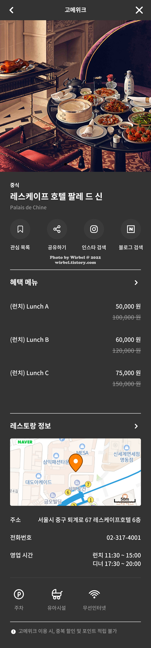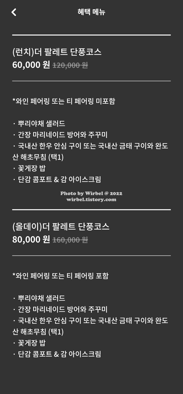 회현역 레스케이프호텔 팔레드신 고메위크 메뉴 가격.
