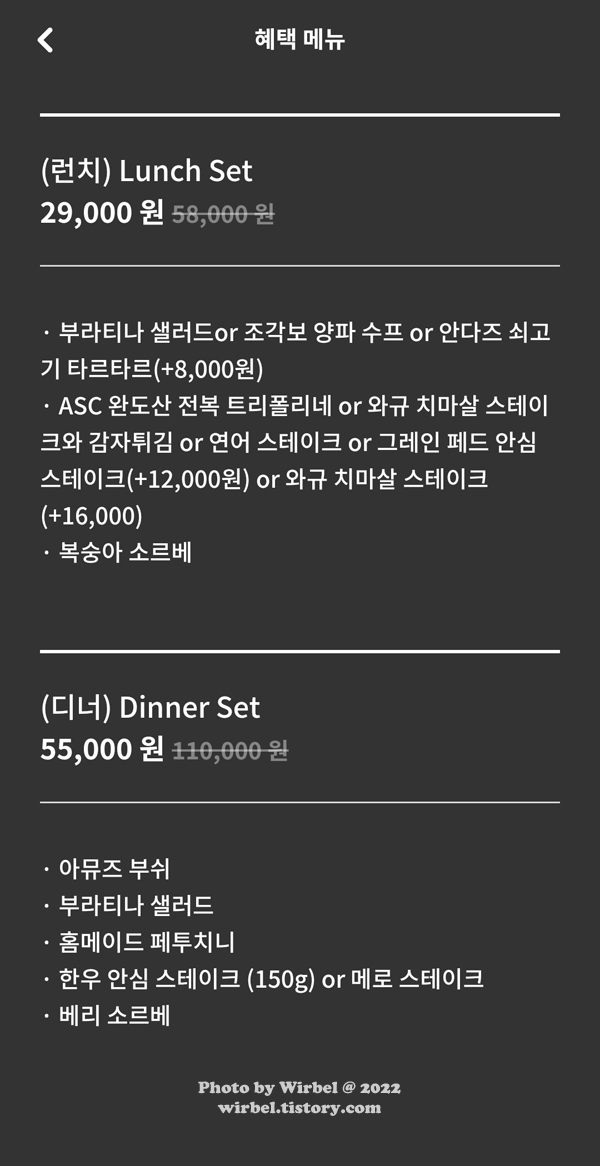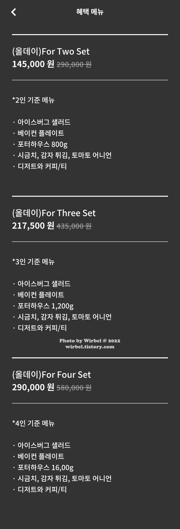 압구정로데오역 볼트스테이크하우스 고메위크 메뉴 가격.