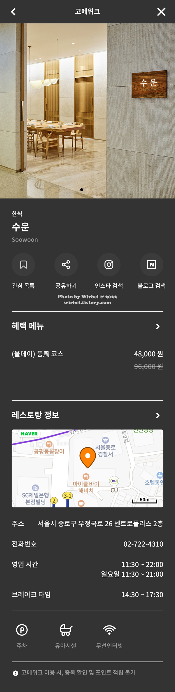 수운 캐치테이블: https://app.catchtable.co.kr/ct/shop/Y2F0Y2hfY0I3UTU2V2VFU2lpUFhUeWxmRU5yZz09