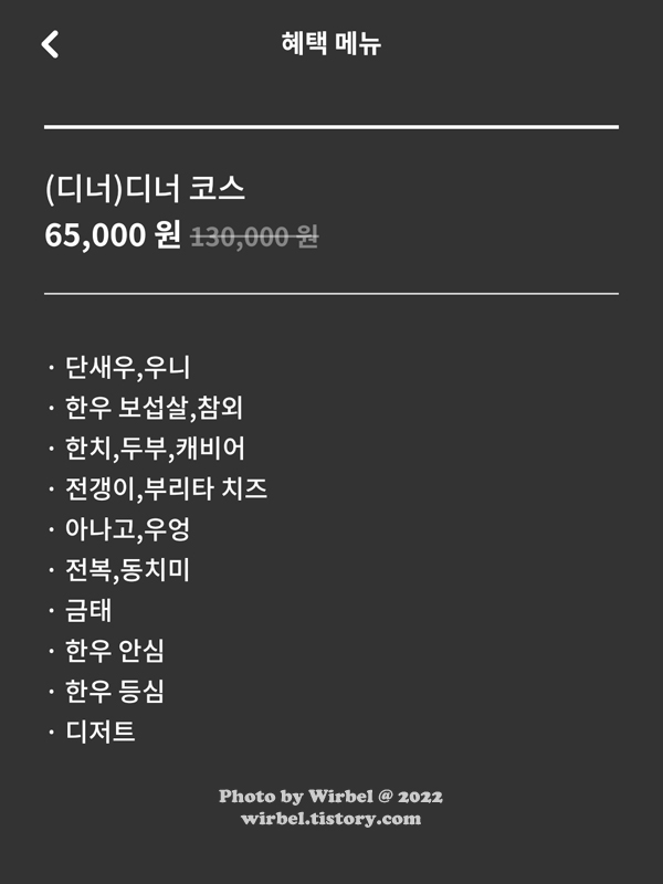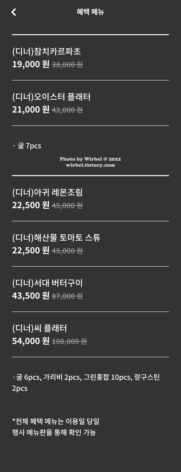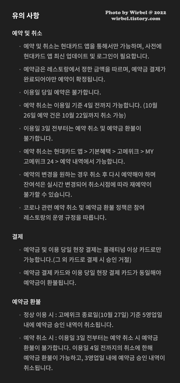 현대카드 고메위크 맛집 메뉴 가격 정보.