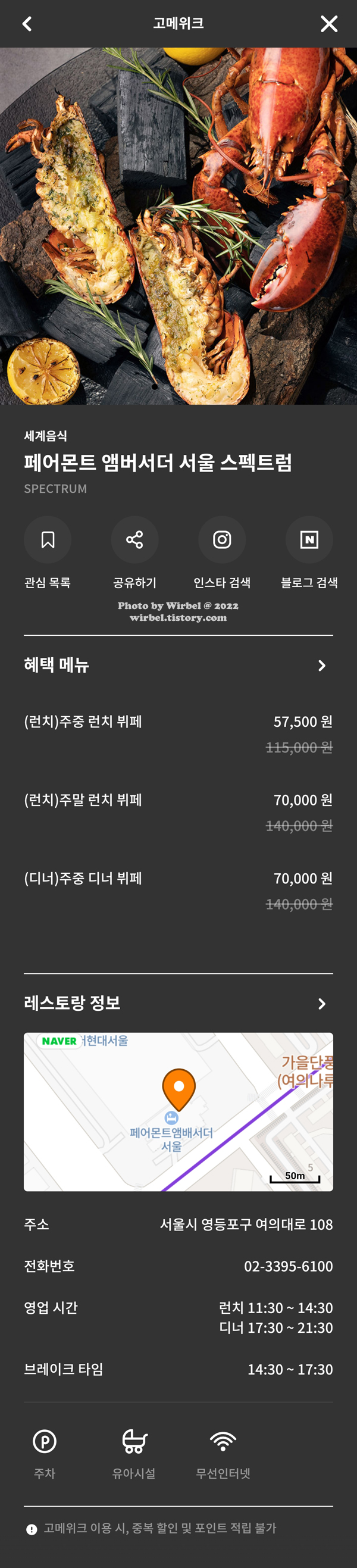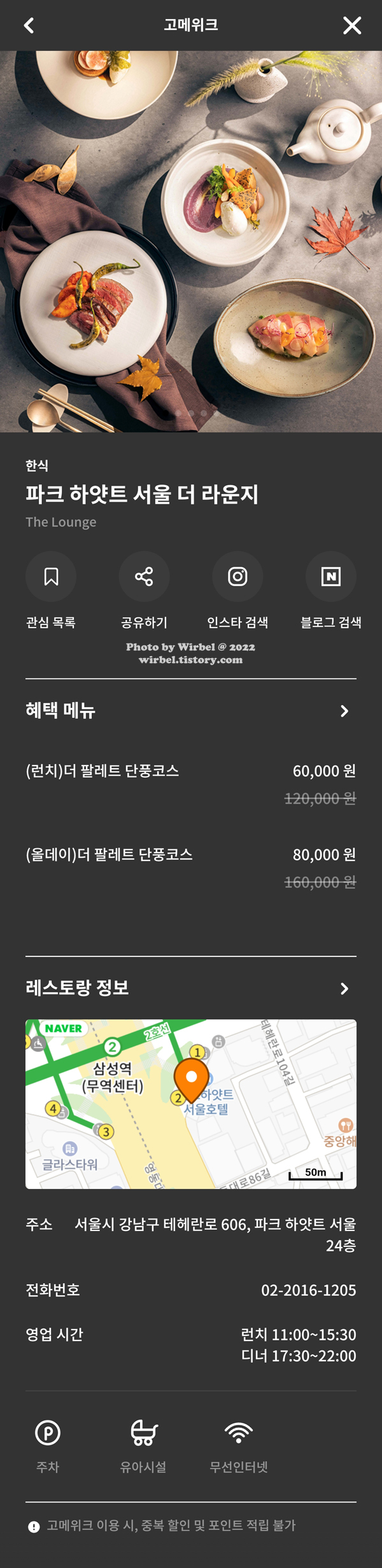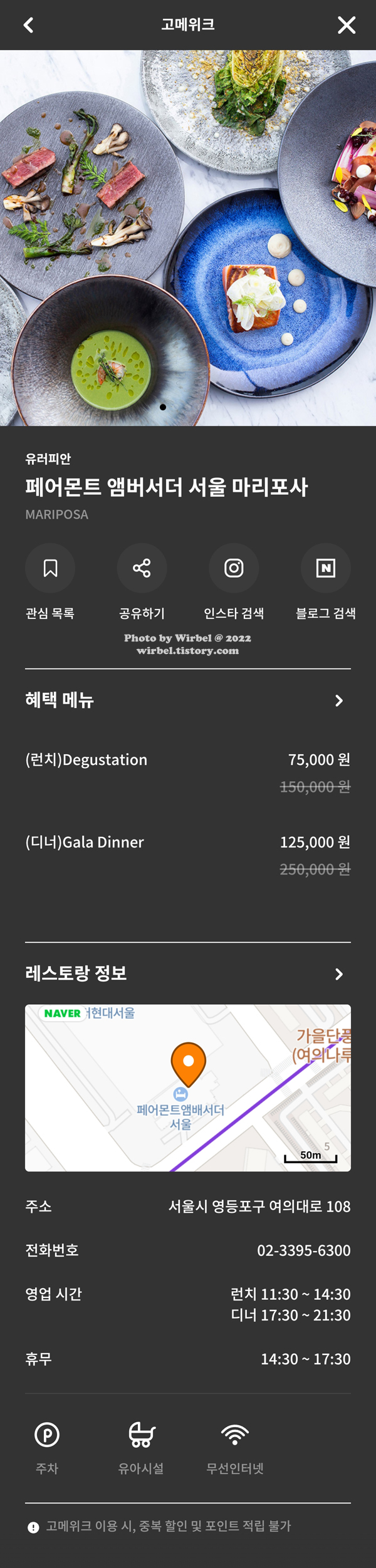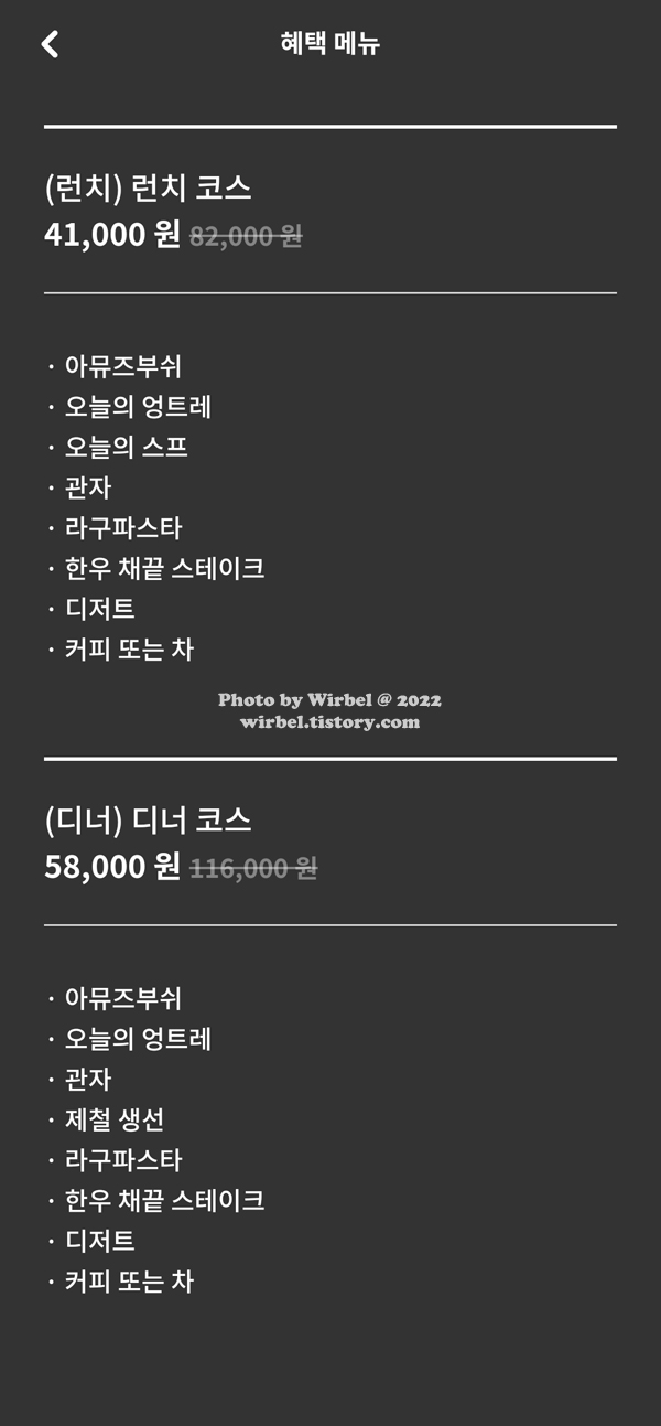 현대카드 고메위크 레스토랑 메뉴 가격 정보를 정리하기 위해서 남겨봅니다.