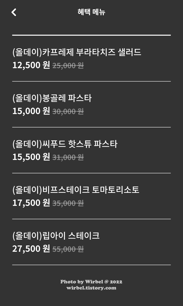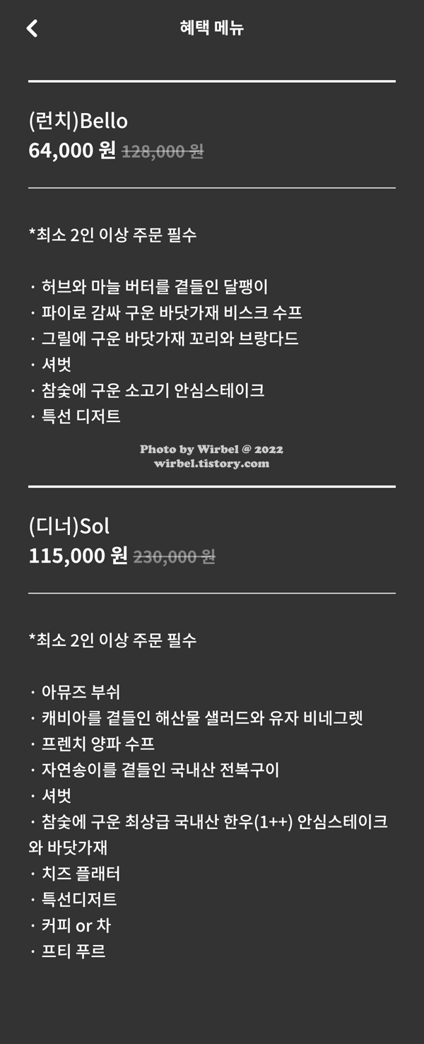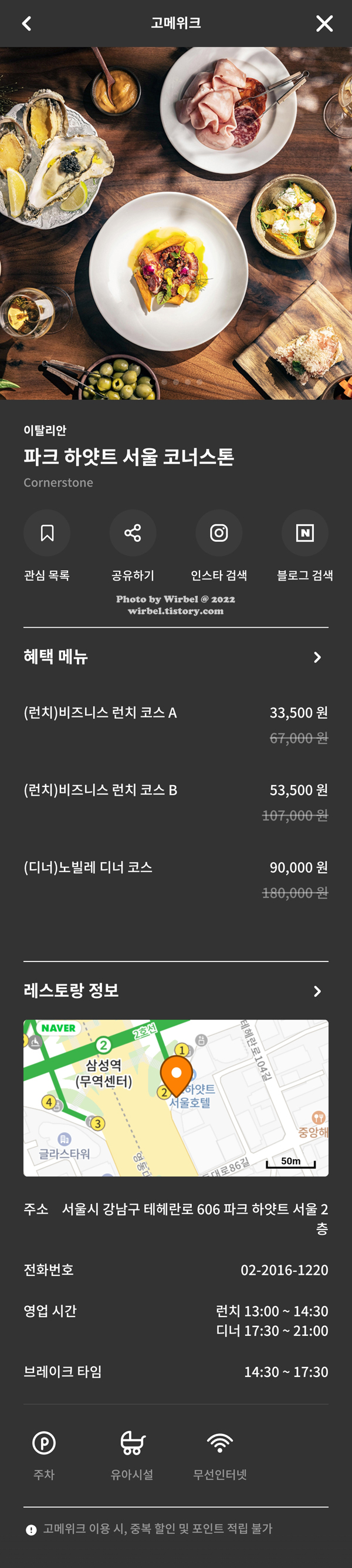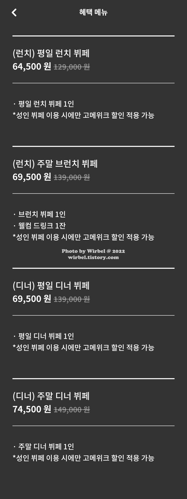 고속터미널역 와이스타일 서래마을점 고메위크 메뉴 가격.