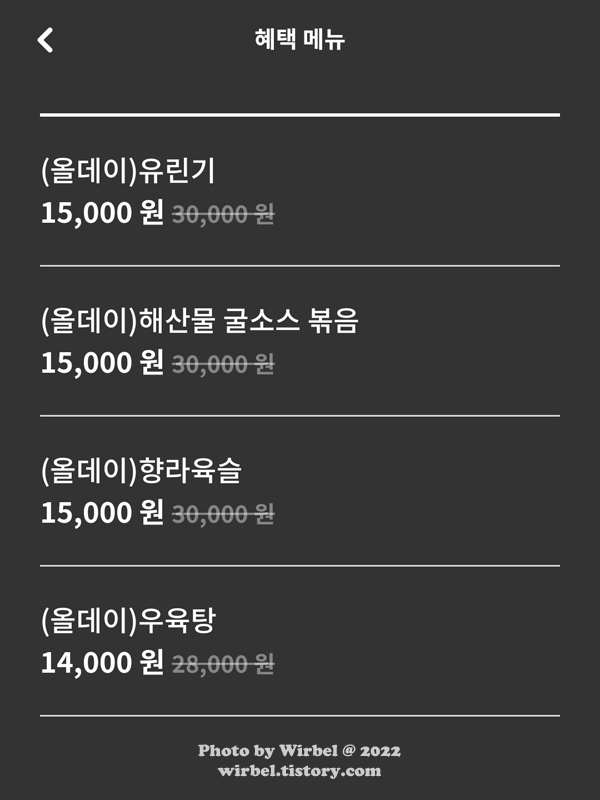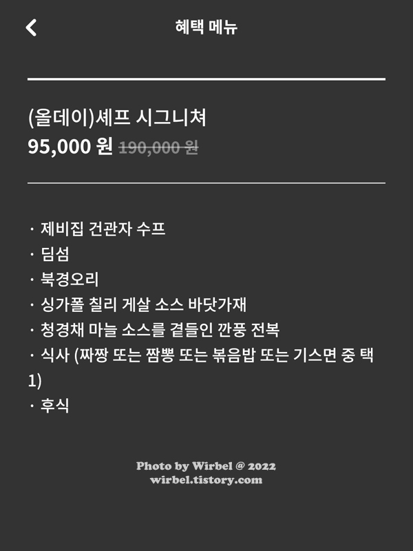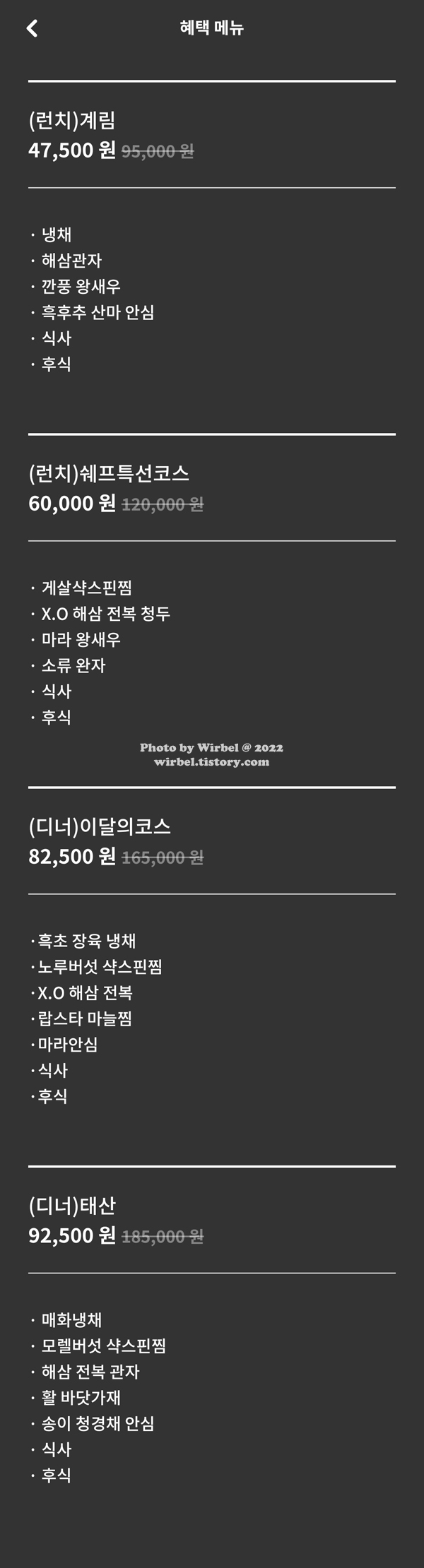 몽중헌 패럼타워점 고메위크 메뉴 가격.