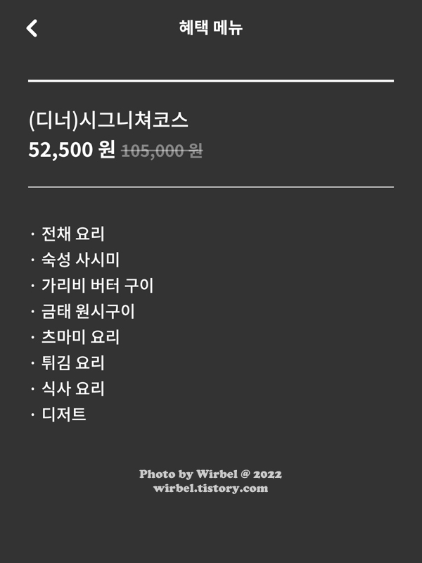 압구정로데오역 스시키레이 고메위크 메뉴 가격.