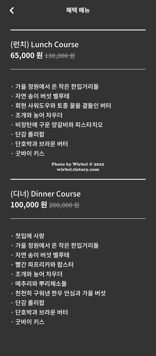 | 2023년 현대카드 고메위크 25 서울 부산 레스토랑 메뉴 가격! (10) | 2023.10.21 |