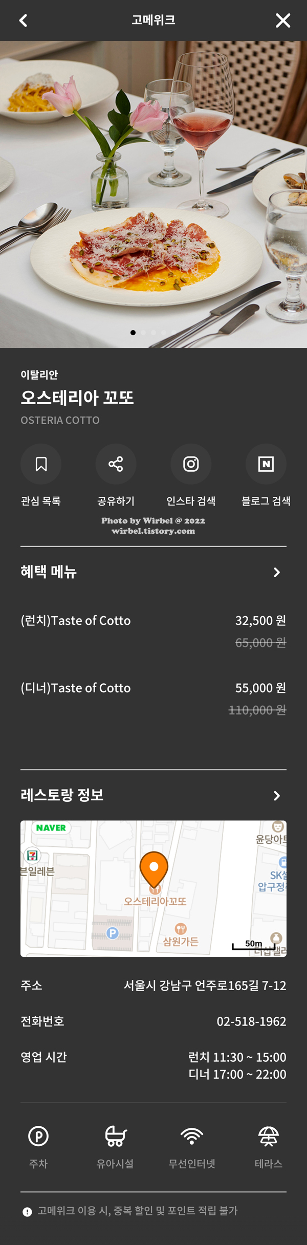 오스테리아꼬또 홈페이지: https://sgdinehill.co.kr/restaurant/osteria-cotto/