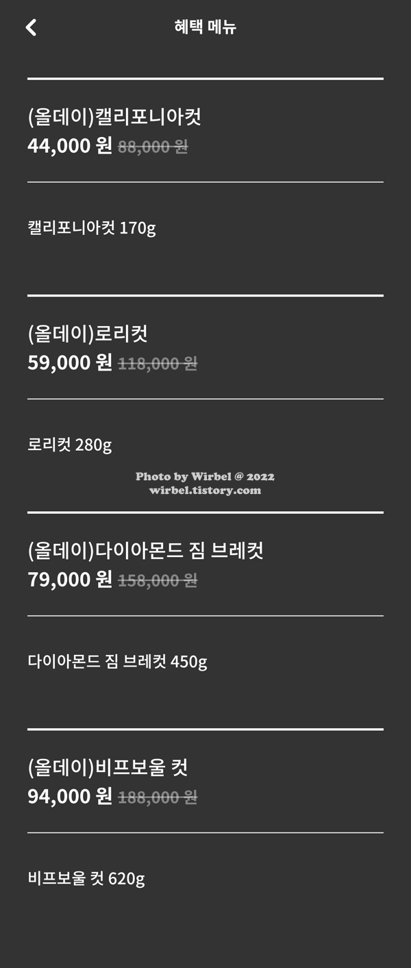 압구정역 붓처스컷 도산점 고메위크 메뉴 가격.