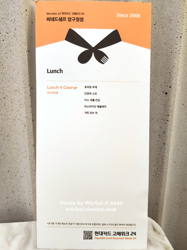 압구정 씨네드쉐프는 현대카드 고메위크24 참여 레스토랑으로