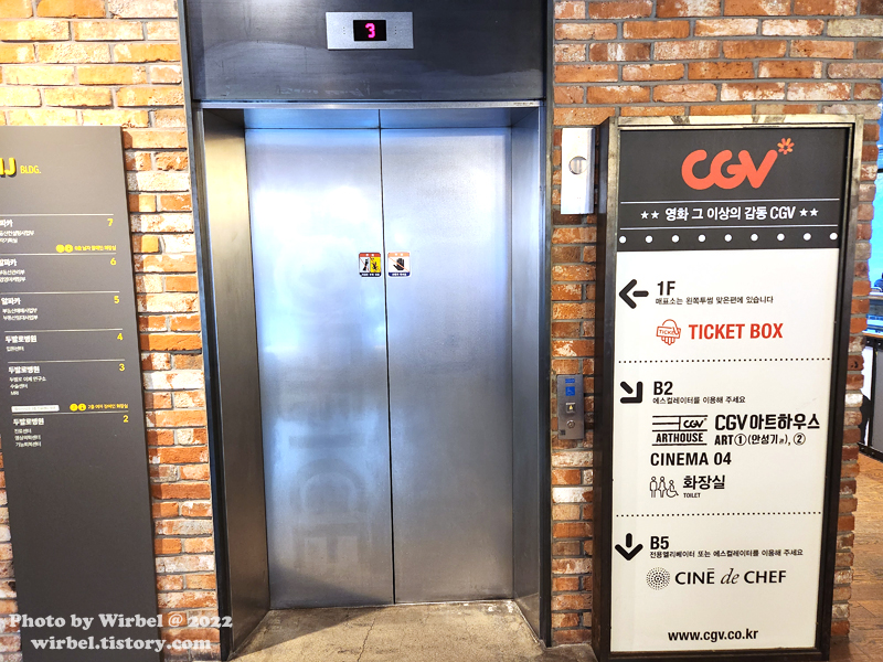 씨네드쉐프로 갈 수 있는 엘리베이터는 이것입니다.