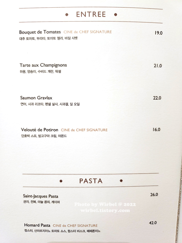 청담동 씨네드쉐프 디너 코스 메뉴.
