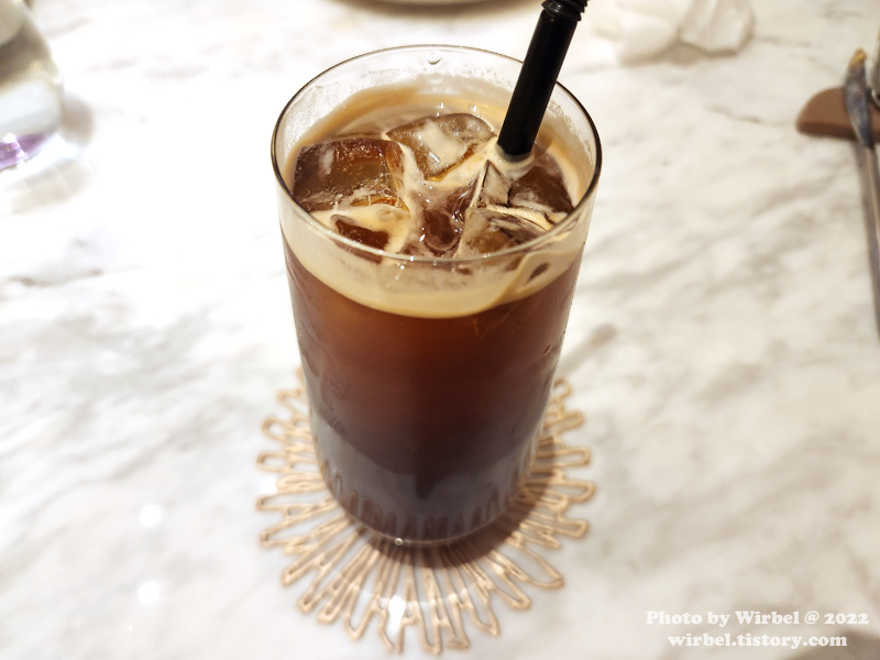 아이스 아메리카노와 아이스 카페라떼를 마시면 식사를 마무리합니다.