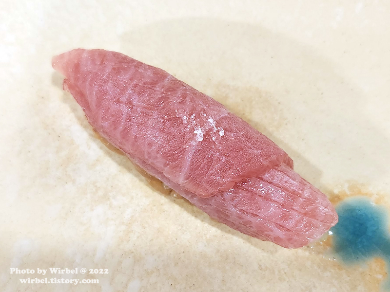 참치 뱃살에는 소금이 곁들여져서 나옵니다.