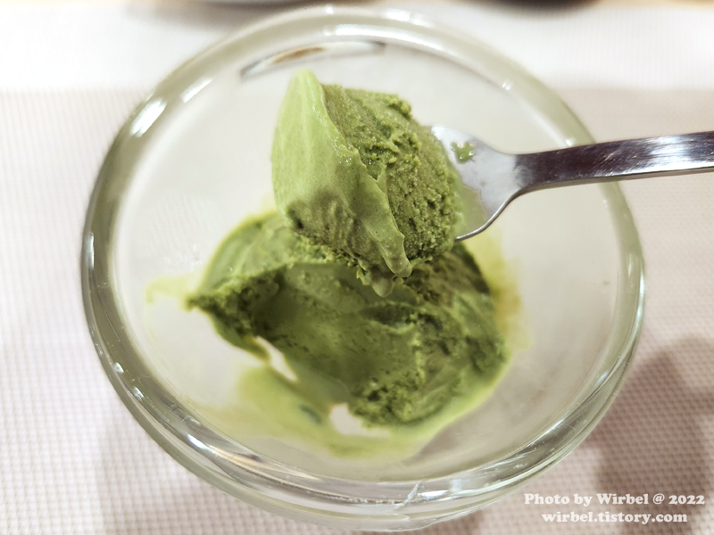 꾸덕한 녹차 아이스크림으로 식사를 마무리합니다.