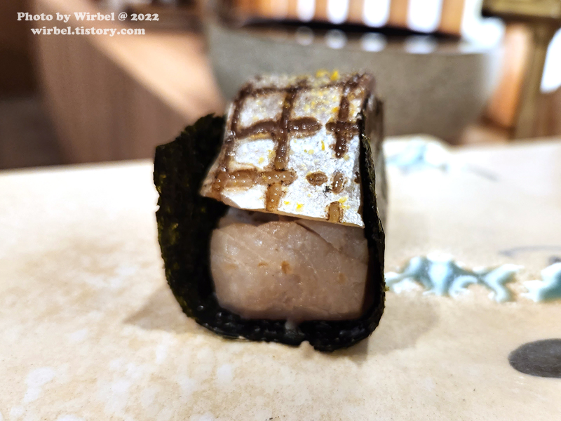 앵콜 스시 하나를 주시는데 이것도 잠시 내려놓고 후다닥 찍어봅니다.