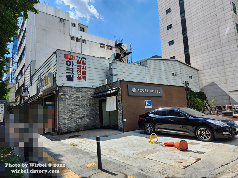 스시소우카이 주소지에 동대문 에이큐브호텔이 있지만 스시소우카이 출입구는 외부에 있습니다.