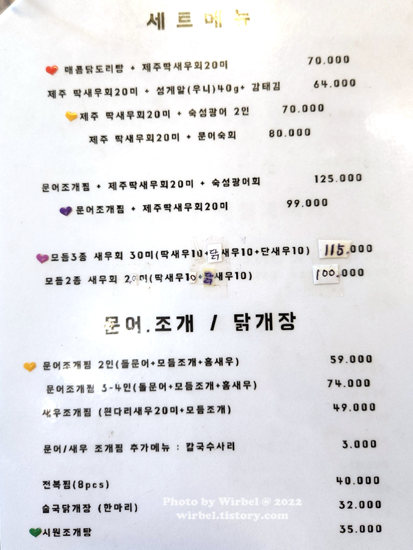 매콤닭도리탕 + 제주 딱새우회 20미 70,000원.