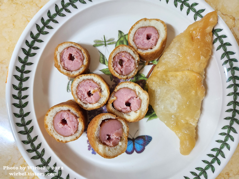 핫도그는 떡볶이와 같이 먹기 좋게 잘라줍니다.