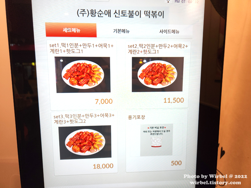 <신토불이떡볶이 1인 세트>, 가격: 7,000원.