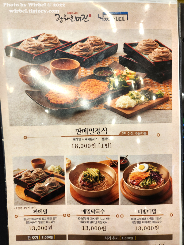 판메밀정식 18,000원.