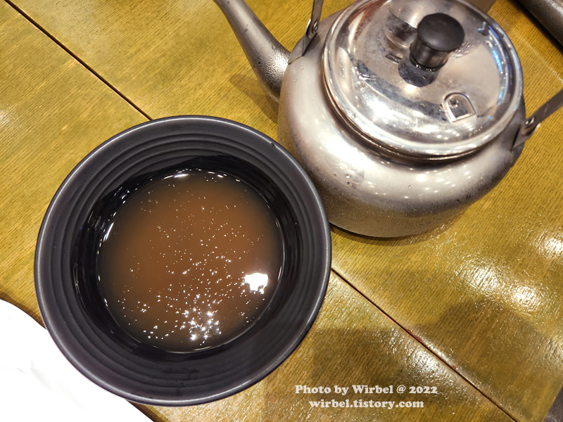 시원한 간장육수는 주전자에 담겨서 나옵니다.