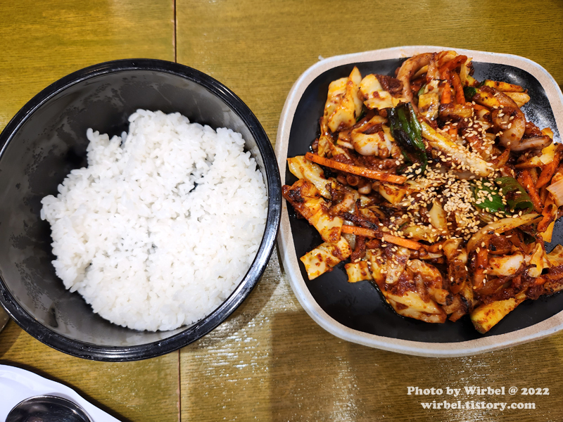 낙지는 직화에 볶았는지 그릴향이 나면서 양념은 거칠게 묻어 있습니다.