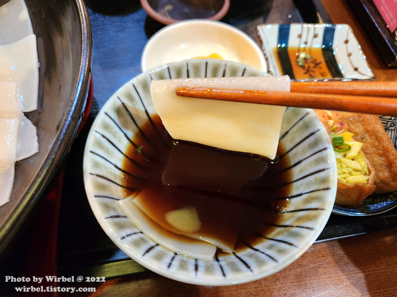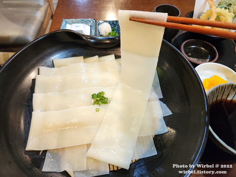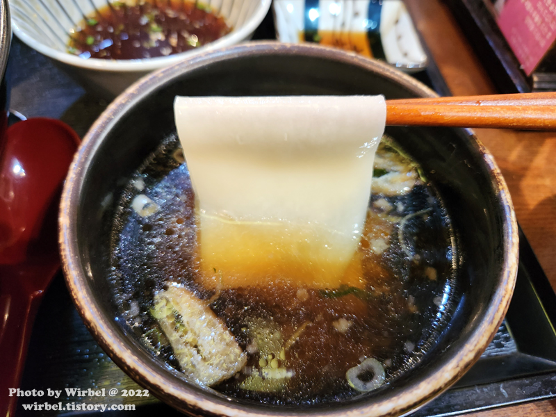 다른 곳에서 먹던 우동과는 다른 특유의 쫀득한 식감이 있는 납작우동입니다.