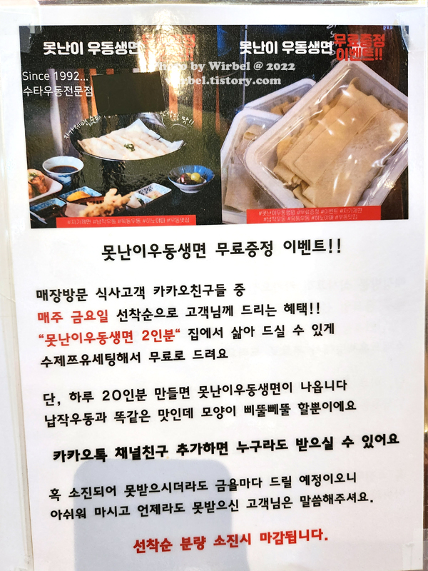 금요일 못난이 우동 생명 무료증정 이벤트 안내.