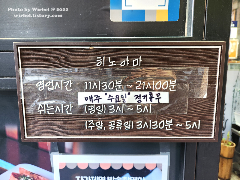 상호: 히노야마 전화번호: 02-2650-8667 영업시간: 11:30 ~ 21:00 (Break Time 평일 15:00 ~ 17:00, 주말 15:30 ~ 17:00) (수요일 휴무) 주소: 서울 양천구 목동서로 349 센트럴프라자 1층 119호 (서울 양천구 신정동 321-7 센트럴프라자 1층) 주차: 가능 히노야마 홈페이지: https://hinoyama.modoo.at/ 히노야마 인스타그램: http://www.instagram.com/hinoyama_udong |