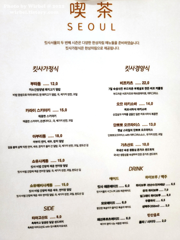 샤로수길 줄서는식당 킷사서울 메뉴 가격.