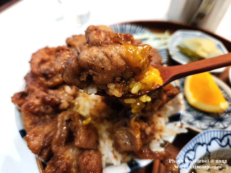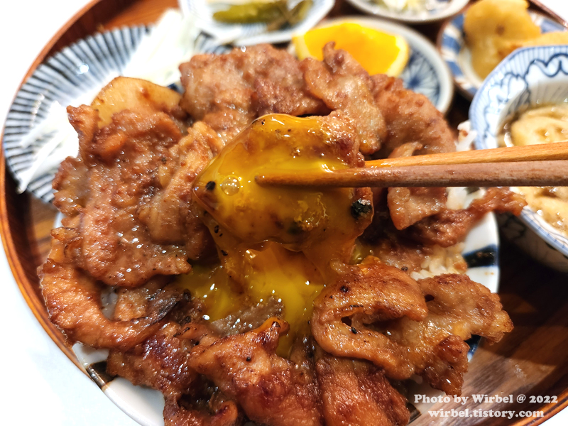 부타동 위에는 달걀노른자가 얹어져서 나옵니다.