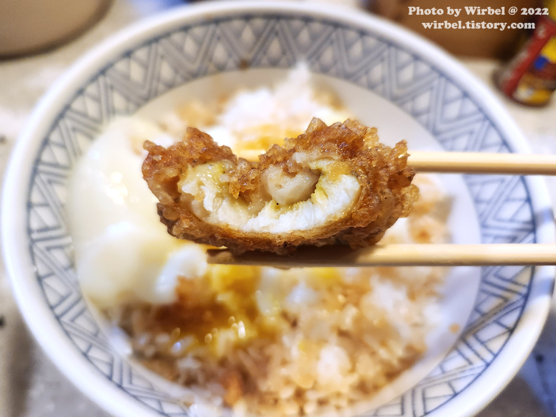 오동통한 새우는 가볍고 부드러운 튀김에 잘 싸여 있습니다. 츄릅~~