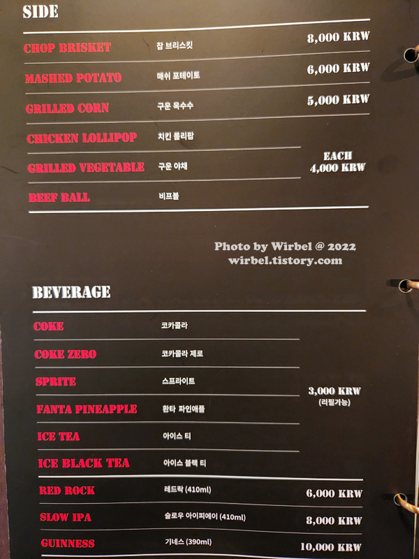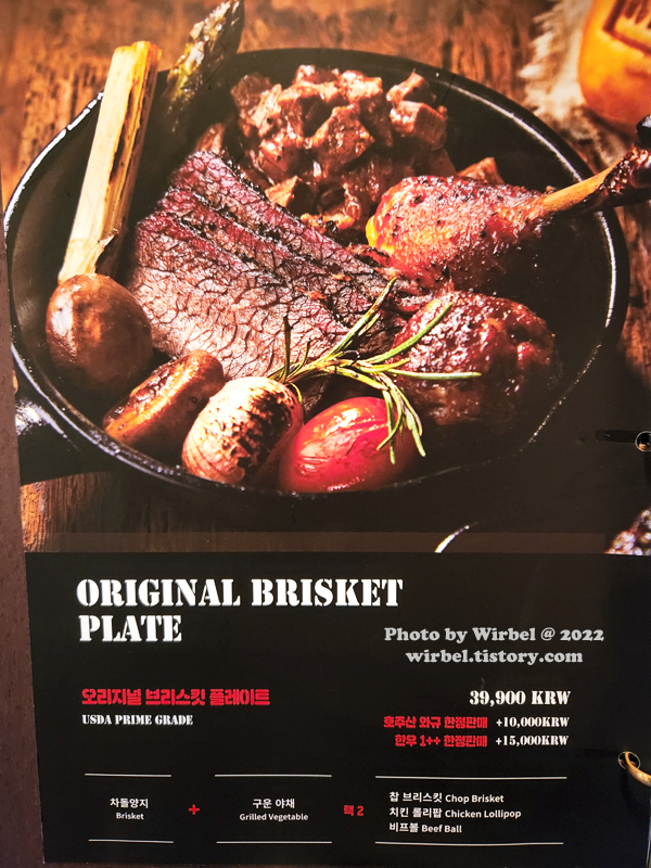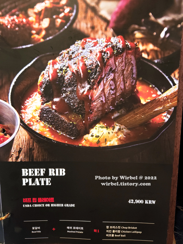 이태원 텍사스 BBQ 로우앤슬로우 메뉴 안내.