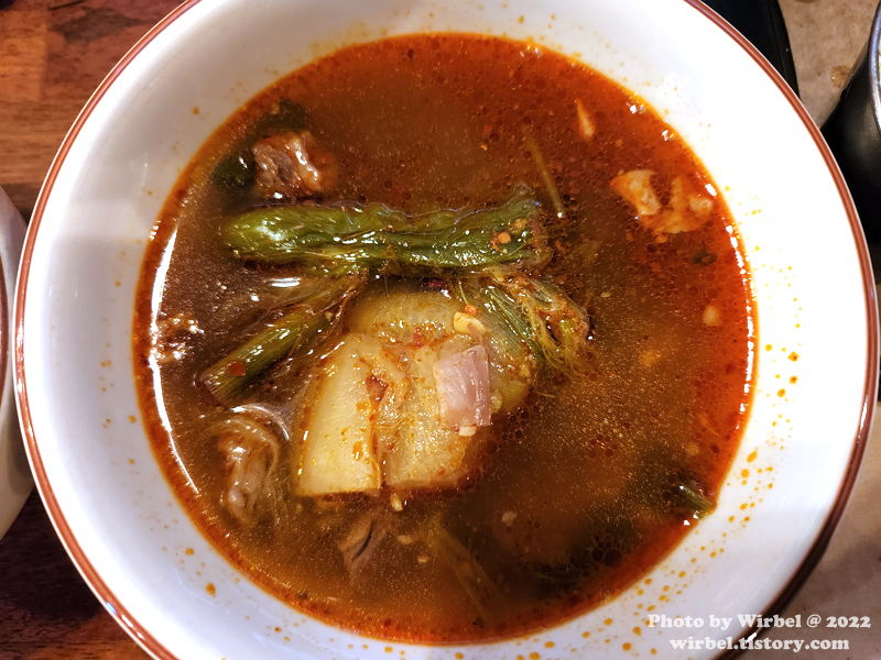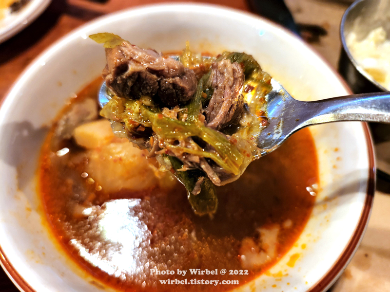 고기로 입에 물릴 것을 고려해서 얼큰한 소고기무국 같은 육개장이 나오는 것 같습니다.
