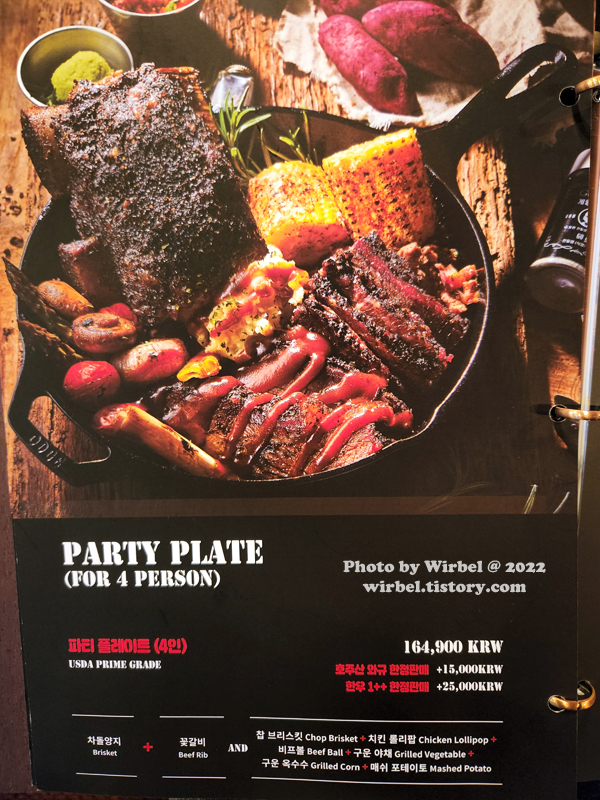 한줄평: 맛있지만 비싸다! 방문 시기: 2022년 7월 이날 가격: 164,900원 시그니처 메뉴: 바베큐 재방문의사: 더이상 없을 듯 함 |
