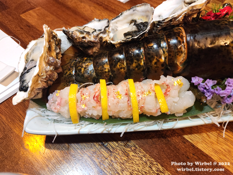 랍스터 몸통만 회로 나오고 다리 부분은 나중에 랍스터 라면으로 먹어봅니다.