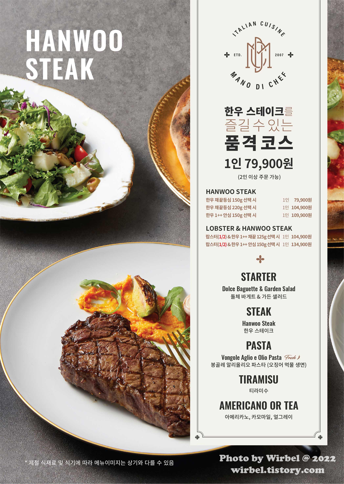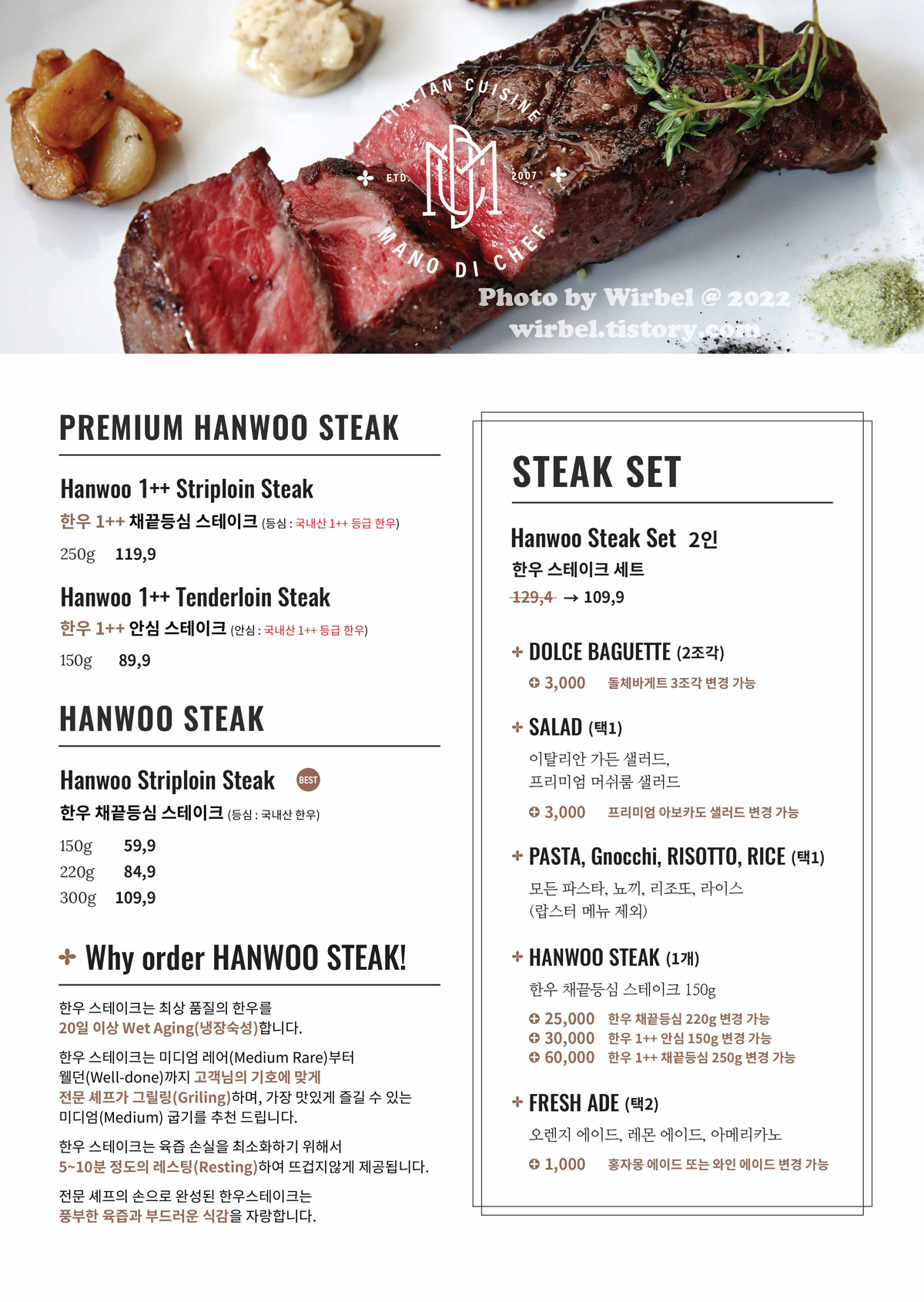 잠실역 마노디셰프 스테이크 메뉴 가격.