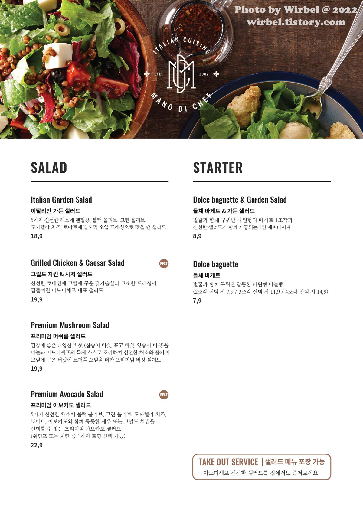 잠실나루역 마노디셰프 애피타이저 메뉴 가격.