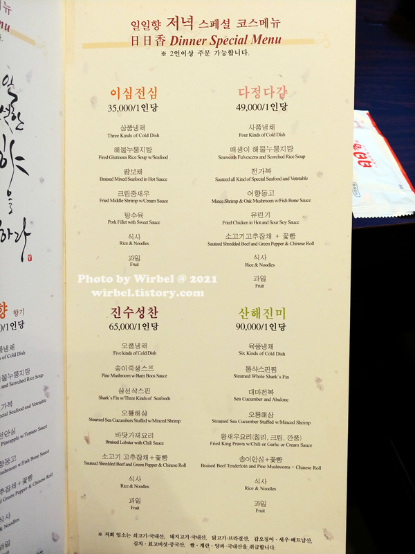 석촌호수 일일향 점심 코스 메뉴 가격.