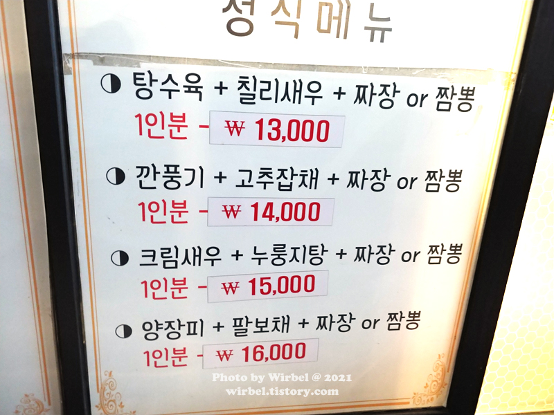 양장피 + 팔보채 + 짜장 or 짬뽕 16,000원.
