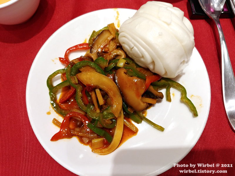 <소고기 고추잡채 + 꽃빵 / Sauteed Shredded Beef and Green Pepper & Chinese Roll>.