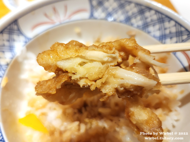 튀김옷은 전체적으로 얇고 가볍게 바삭거리는 스타일인데