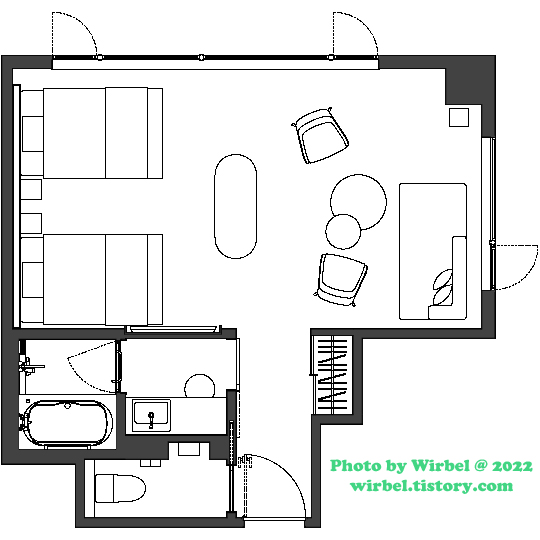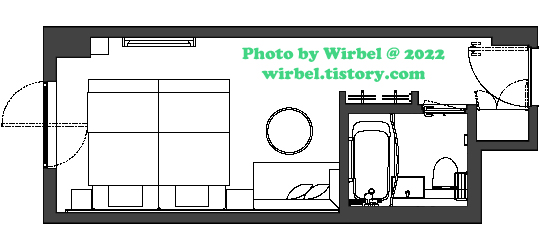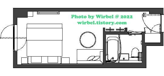 비스키오 호텔 스탠다드 더블룸 구조는 이렇게 되어 있습니다.